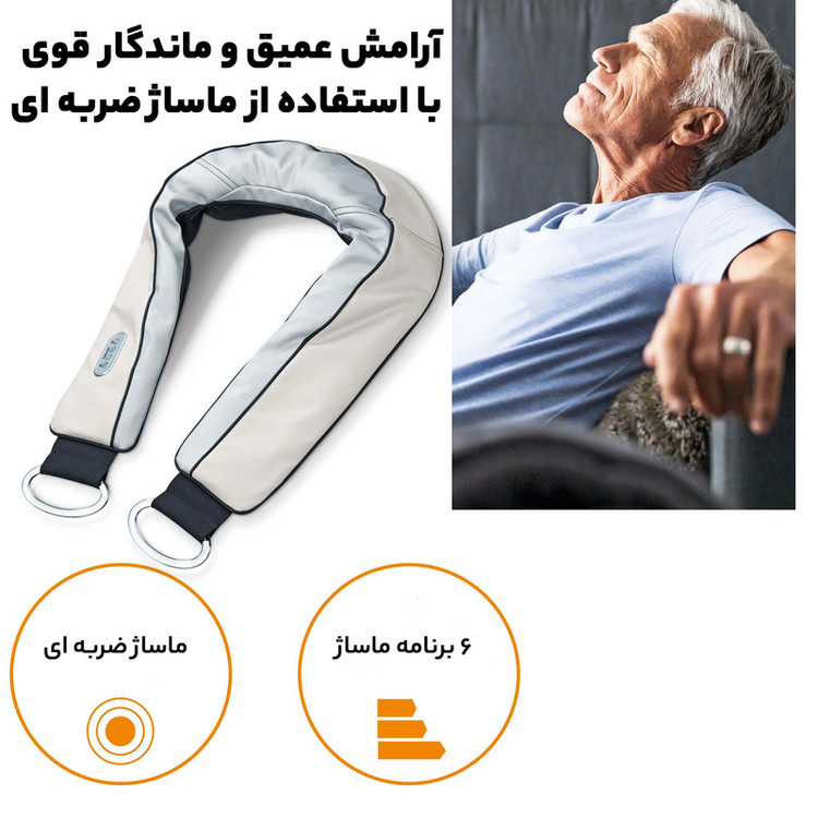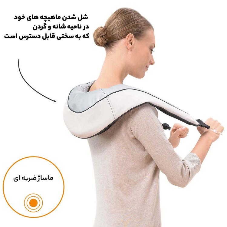 یک ماساژور برای گردن و جلوگیری از گرفتگی عضله های آن می باشد البته این محصول برای افرادی که در روز فشار کاری زیادی دارند و یا با کامپیوتر کار می کنند، برای رفع خستگی گردن پیشنهاد می شود. ویژگی های آن به شرح زیر است: - ماساژ عمقی و موثر برای برطرف کردن تنش های عمیق عضلات است.بهترین ماساژور برای موضع گردن و شانه برای مناطق با دسترسی سخت است.ماساژ ضربه ای نافذ برای رفع خستگی است. ماساژور چند مرحله ای با قابلیت تنظیم شدت ماساژ است. دسته های کاربردی برای آزاد بودن دستها هنگام ماساژ است.