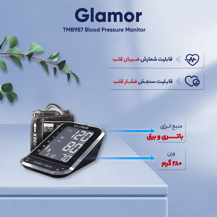 فشارسنج دیجیتال بازویی گلامور مدل tmb987 فشارسنج دیجیتال بازرویی گلامور مدل TMB987 یکی از انواع برتر فشارسنجهای دیجیتالی است که برای اندازهگیری دقیق فشار خون به کار میرود. این فشارسنج با طراحی زیبا و کارایی بالا، انتخابی عالی برای افرادی است که به سلامتی خود اهمیت میدهند. فشارسنج دیجیتال بازرویی گلامور مدل TMB987 با استفاده از فناوری دیجیتال، امکان اندازهگیری دقیق و صحیح فشار خون را فراهم میکند. این وسیله پزشکی با دقت بالا و نمایشگری روشن و واضح، به افراد این امکان را میدهد تا بهطور دقیق و مطمئن فشار خون خود را اندازه بگیرند و سلامتی خود را زیر نظر داشته باشند. طراحی زیبا و اندازه کوچک این فشارسنج، امکان حملونقل آسان و استفاده راحت از آن را فراهم میکند. با داشتن این وسیله پزشکی همراه خود، افراد میتوانند در هر زمان و مکانی که هستند، فشار خون خود را اندازهگیری کرده و وضعیت سلامتی خود را پایش کنند. در مجموع، فشارسنج دیجیتال بازرویی گلامور مدل TMB987 با ترکیبی از زیبایی، دقت و کارایی بالا، انتخابی مناسب و ایدهآل برای افرادی است که به پیگیری و نظارت بر وضعیت سلامتی خود اهمیت میدهند. اهمیت استفاده از فشارسنج دیجیتال فشارسنجها ابزارهایی هستند که برای اندازهگیری فشار خون در بدن انسانها استفاده میشوند. این دستگاهها به دو دسته آنالوگ و دیجیتال تقسیم میشوند. فشارسنجهای آنالوگ با استفاده از نوک قلمی و سیستمهای فشاری سنتی فشار خون را اندازهگیری میکنند، در حالی که یییفشارسنجهای دیجیتال با استفاده از فناوریهای پیشرفتهتری مانند سنسورها و نمایشگرهای الکترونیکی این کار را انجام میدهند. فشارسنجهای دیجیتال به دلیل دقت بالاتر و سرعت بیشتر در اندازهگیری فشار خون، انتخاب بسیاری از افراد میشوند. این دستگاهها معمولا دارای صفحه نمایش دیجیتال هستند که به صورت دقیق و روشن اطلاعات اندازهگیری شده را نمایش میدهند، در حالی که فشارسنجهای آنالوگ بیشتر بر پایه خوانایی نوک قلمی و نشانگرهای متحرک عمل میکنند. نحوه کار با فشارسنج دیجیتال بازرویی گلامور این فشارسنج دیجیتال بازرویی گلامور با استفاده از تکنولوژی برتر، قادر به اندازهگیری دقیق فشار خون است. با استفاده از سنسورهای حساس و پیشرفته، این دستگاه تغییرات فشار خون را به صورت دقیق نمایش میدهد و به شما امکان میدهد تا وضعیت سلامت خود را بررسی کنید. برای استفاده از این فشارسنج، ابتدا باید دستگاه را روشن کرده و منبع تغذیه آن را اتصال دهید. سپس باید منبع تغذیه را به درستی قرار داده و منبع نوری مناسب فراهم کنید تا بتوانید نتایج را به صورت واضح مشاهده کنید. سپس آرنج خود را روی میز قرار داده و منبع نوری را به دستگاه متصل کنید. با فشردن دکمه شروع، دستگاه شروع به اندازهگیری فشار خون میکند و نتایج را نمایش میدهد. نکات مهم در استفاده صحیح از این فشارسنج برای استفاده صحیح از این فشارسنج، باید همیشه اطمینان حاصل کنید که دستگاه به درستی روشن شده و منبع تغذیه آن مطابق با نیازهای آن است. همچنین باید دستگاه را به درستی نگهداری کرده و از آن به دقت استفاده کنید تا نتایج دقیقی دریافت کنید. همچنین باید هنگام استفاده از دستگاه، به نکات بهداشتی توجه کنید و از استفاده از دستگاه با دستان خیس خودداری کنید تا دقت در اندازهگیری حفظ شود. چگونه اعداد فشارسنج دیجیتالی را بخوانیم؟ برای یادگیری روش کار با دستگاه فشارسنج دیجیتالی، ابتدا بهتر است یاد بگیرید چگونه اعداد را در آن تشخیص دهید. در این نوع دستگاهها، عموما در سطر اول یک عدد سه رقمی و در سطر دوم یک عدد دو رقمی نمایش داده میشود. برای سهولت کار، رقم آخر این اعداد معمولا نادیده گرفته میشود. بهطور مثال اگر اعداد نمایش داده شده به ترتیب ۱۲۵ و ۷۰ باشند، ما فشار خون را به صورت ۱۲ به ۷ در نظر میگیریم. به یاد داشته باشید که عدد اول، یعنی سیستول، میتواند میزان فشار خون را به خصوص در افراد مسن و دارای بیماری قلبی عروقی نشان دهد، بنابراین اهمیت بسیار