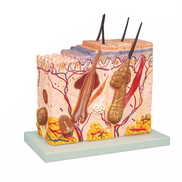 مولاژ مقطع پوست انسان با نمایش پلکانی لایه ها مناسب برای تدریس و مطالعه دانشجویان و دکور مطب پزشکان و کلینیک های درمانی تولید شده از جنس پلاستیک (پی وی سی نشکن)
