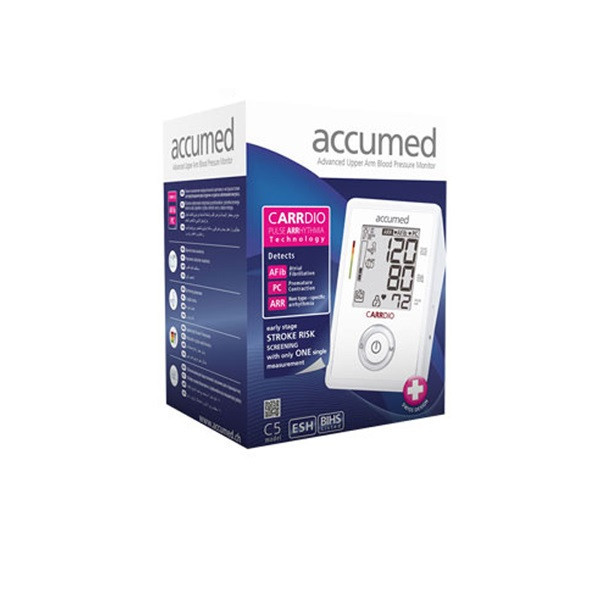 فشارسنج بازویی دیجیتال مدل C5 اکیومد محصول برند Accumed سوئیس است که برای مصارف خانگی و حرفه ای عرضه شده است. این فشارسنج بازویی در سایز و ابعاد مناسب طراحی و تولید شده است و به راحتی می توان از در منزل و در مسافرت نیز از آن استفاده نمود.امروزه فشارخون بالا از جمله بیماریهایی است که میتواند مشکلات بسیاری برای شما ایجاد کند و همهی سیستمهای بدن را تحت تاثیر قرار دهد.فشارخون در صورتی که درمان نشود، میتواند به شدت کیفیت زندگی فرد را به طرز چشمگیری کاهش دهد.یکی از جنبههای خطرناک فشارخون بالا این است که ممکن است فرد از بیماری خود اطلاع نداشته باشد، در واقع تقریبا یک سوم افراد مبتلا به فشارخون بالا از بیماری خود اطلاع ندارند. تنها راه آگاهی از فشارخون بالا از طریق معاینات منظم است.افراد مبتلا به فشارخون بالا می بایست میزان فشارخون خود را به طور منظم چک کنند. پس داشتن یک دستگاه فشارسنج در منزل برای این بیماران الزامی است. از آنجا که اغلب افراد نحوه اندازه گیری فشارخون با دستگاه فشارسنج معمولی را بلد نیستند لذا توصیه می شود که از دستگاه فشارسنج دیجیتالی استفاده کنند.شرکت اکیومد (Accumed) طراح و تولید کننده دستگاههای ارتوپدی پزشکی است که این محصولات برای بازسازی و تسکین آسیبهای تروما استفاده میشود. محصولات شرکت آکیومد شامل صندلی ماساژور، ماساژور پا، انواع فشار سنج ها، دستگاه بخور گرم و سرد، گوشی پزشکی، تب سنج، ترازوی دیجیتال و … میشود.