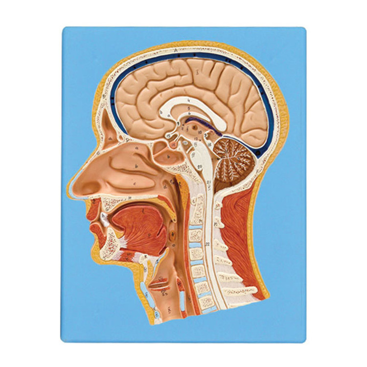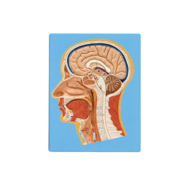 مولاژ وسیله ای کاربردی در حیطه آموزشی، پزشکی و درمانی است که برای تشریح آناتومی عضوی از بدن به کار می رود. این ابزارها برای شبیه سازی آسیب های وارده به بدن و نمایش ساختار عضوی خاص در آزمایشگاه های مجهز، مراکز آموزشی و درمانی استفاده می شوند. مولاژ ها برای آموزش دانش آموزان و دانشجویان در دروس کالبد شناسی، رشته های پزشکی، مامایی، دندان پزشکی، گیاه شناسی و جانور شناسی به کار می روند. مدل های آموزشی به صورت های مختلفی مانند حالت ایستاده، دیواری و رومیزی تولید می شوند. بعضی از مولاژها با قطعات قابل تفکیک مگنتی و پینی طراحی می شوند. مولاژ مقطع سر و صورت ، از نوع دیواری (قابل نصب بر روی دیوار) بوده و از PVC نشکن ساخته شده است. کفه از جنس پلاستیک می باشد و مولاژ به طور ثابت بر روی آن قرار گرفته است. این مدل در اندازه طبیعی با ابعاد 29x23x4 سانتی متر با وزن ۴۵۰ گرم ساخته شده است. رنگ آمیزی مدل با رنگ های ثابت بدون سرب و مطابق با واقعیت انجام شده است. این محصول قابل شستشو بوده و در صورت شستشو، آسیبی به بافت و رنگ آن نخواهد رسید.