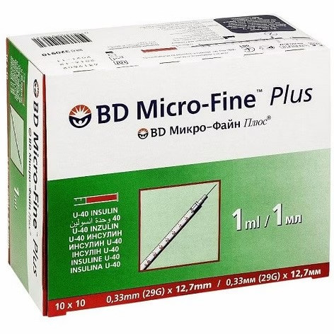 بیماری دیابت از ناتوانی بدن در تولید انسولین یا هورمون کنترل قند خون ناشی میشود. معمولا بیماران دیابتی پس از مدتی مجبور به تزریق انسولین میشوند، مگر این که بتوانند با مصرف دارو و رژیم غذایی مناسب قند خون خود را کنترل کنند. سرنگ انسولین «بی دی» (BD) مدل «Micro-Fine» باعث میشود بیماران دیابتی تزریق سادهتر و خوشایندتری داشته باشند. میزان انسولین تزریقی برای بیماران مختلف متفاوت است و در نتیجه دقیق بودن حجم سرنگ اهمیت بسیاری دارد. حجم این سرنگ بی دی 1 میلیلیتر است و برای بیمارانی که با این دوز انسولین تزریق میکنند مناسب است. اگر حجم سرنگ بیش از دوز مورد نیاز باشد، دقت میزان دوز تزریقی کاهش مییابد و ممکن است برای بیمار خطرناک باشد. همچنین برای تزریق دوزهای کمتر بهتر است از سرنگ با حجم کم استفاده شود تا از سرنگهای بزرگ زیرا به این شکل دقت تزریق افزایش مییابد. این سرنگ برای بیمارانی که بیش از 50 واحد انسولین تزریق میکنند مناسب است.