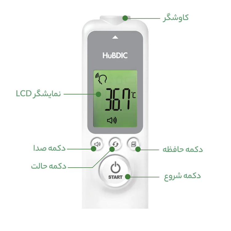 تب سنج غیرتماسی مادون قرمز هابدیک مدل HFS-1000 یک تب سنج کامل و منحصر به فرد است. این تب سنج علاوه بر سنجش دقیق دما، قادر است با استفاده از سه رنگ سبز، زرد و قرمز نمایش داده شده در پس زمینهی نمایشگر وضعیت دمای سنجش شده را مشخص کند.همین قابلیت باعث میشود این دستگاه برای سنجش دمای بدن بیماران در کلینیکها یا برای سنجش دمای بدن پرسنل کارگاه، محل کار، کارخانه یا محیط های پرتردد ودر بررسیهای روزانه و مراقبتهای پزشکی در اپیدمیها پرکاربرد باشد.این تب سنج از نوع لیزری بوده و قابلیت سنجش دمای بدن و اجسام را دارد ، HFS-1000 قادراست محدوده دمای بین 0 تا 100 درجه سانتیگراد را با دقت 0.2 درجه اندازه گیری کند.تب سنج غیرتماسی مادون قرمز هابدیک مدل HFS-1000 امکان تغییر واحد سانتیگراد و فارنهایت را نیز هم دارد.این دستگاه به راحتی از فاصله 2 تا 3 سانتیمتری میتواند دمای بدن افراد را اندازه گیری کند، همچنین کاربری آسان این دستگاه در کنار سرعت و دقت بالای آن وجه تمایز این دستگاه نسبت به سایر تب سنجهای موجود است.