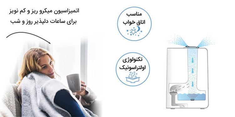 - ایجاد رطوبت و افزایش کیفیت هوای محیط با تکنولوژی پیشرفته اولتراسونیک