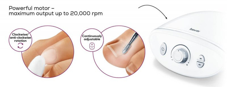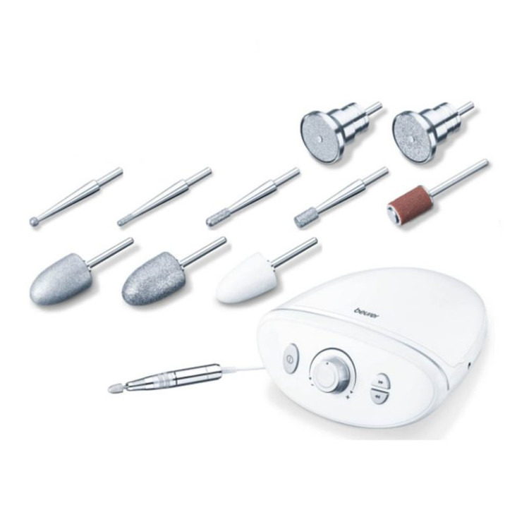 خدمات سالن های زیبایی شامل برطرف کردن عیوب ناخن پا،چیدن گوشه های اضافی ناخن و برداشتن پوست های اضافی و دردناک و یا صاف کردن ناخن های دست و رفع عیوب حاصل از کاشت ناخن نیازمند داشتن یک وسیله تجمیعی و سری های یدکی گوناگون مانند کاغذ سمباده،گوشه گیر مخروطی،گوشه گیر گرد و غیره میباشد.اکنون به لطف دستگاه حرفه ئی MP100 BEURER با 10 سری مختلف و کارکرد قوی موتور میتوانید تمام خدمات حرفه ئی سالن های آرایش و بهداشتی را یکجا در منزل داشته باشید و این یعنی مراقبت همه روزه از پوست و ناخن در منزل و توسط خودتان.با این دستگاه زیبایی را به خانه ببرید