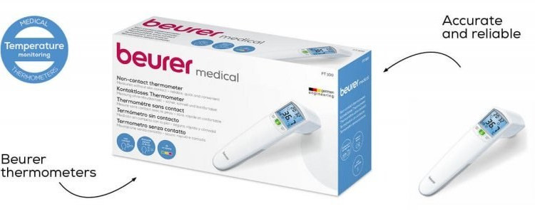 تب سنج دیجیتال بیورر FT100 توانایی اندازه گیری دمای محیط و اجسام وحتی مایعات را نیز دارد.