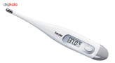 تب سنج FT09 از شرکت مطرح و نامی بیورر نمونه ای است دیگر از محصولات پزشکی این کمپانی که برای مصارف خانگی و همچون سایر محصولات با کیفیت بالا ساخته شده است. نحوهی سنجش این دستگاه از طریق قرار گرفتن سَر تب سنج در زیر زبان است و این سَری فاقد جیوه برای جلوگیری از آسیبدیدگی های احتمالی به بدن طراحی شده است. FT09 دارای وزنی بسیار سبک و دارای محفظه ای شیشه ای است که حمل و نقل را برای فرد راحت میکند. اندازهگیری دمای این دستگاه به این صورت است که اگر دما از یک حدی بالاتر رود 2 بار بوق میزند. در صورت رسیدن دمای بدن به مرز هشدار، آن را بک علامت اعلام میکند و اگر دما نرمال باشد دستگاه یکبار بوق میزند. در صورت پایین بودن دما نیز علامت دیگری نمایش داده میشود. بر روی بدنهی این دستگاه نیز صفحه نمایش LCD برای نمایش میزان دمای بدن در نظر گرفته شده که کاملاً خوانا است.
