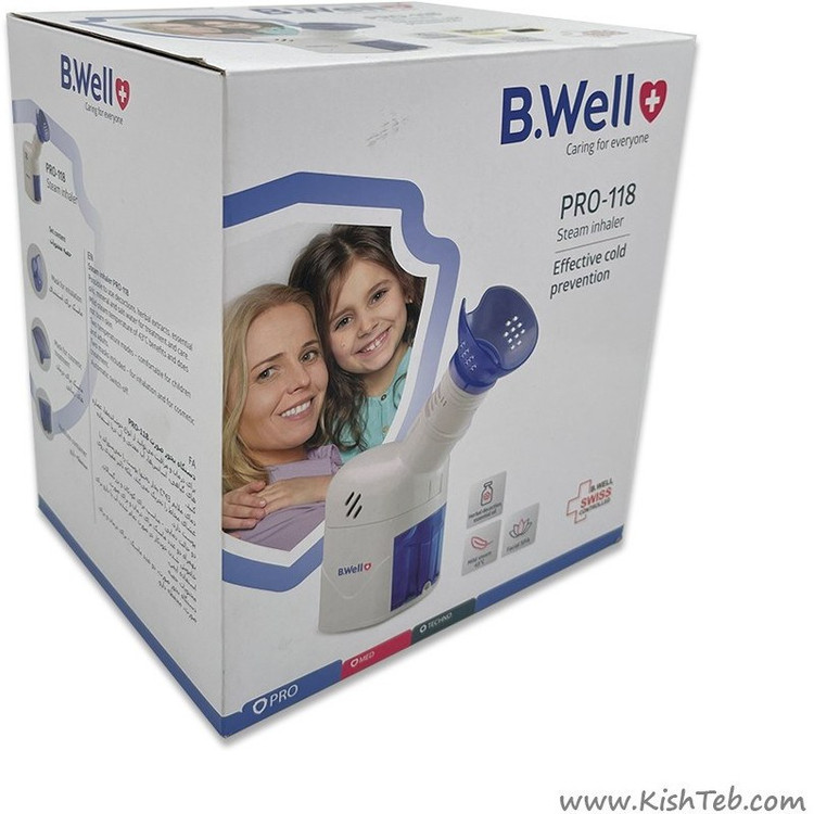بخور صورت B Well pro118 با قابلیت انتشار بخار گرم به بینی میتواند رطوبت را به درون مجاری بینی و تنفسی هدایت نموده و این مجاری را شست و شو دهد.برای استفاده از این محصول کافیست سری مخصوص بینی یا صورت را که درون جعبه قرار داده شده است نصب نموده و بخار آن را استنشاق نمایید.همچنین برای تسکین علائم بیماری های تنفسی ، سرماخوردگی ، فارنژیت یا لارنژیت میتوانید این محصول را استفاده نمایید.طراحی شرکت بی ول متعلق به کشور سوئیس بوده و این محصول با ۲ سال گارانتی رسمی تقدیم حضور خواهد گردید.